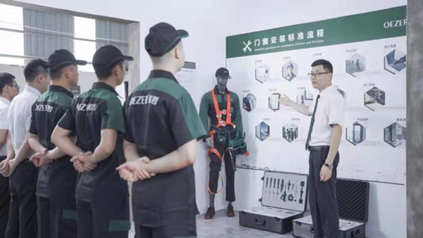 除了率先建立门窗安装交付标准,欧哲门窗还设计建设了行业首个安装实践实训基地,从家庭建筑需求的各个门窗洞口形状实际出发,模拟真实场景,进行实操培训,计划每年为行业输送专业的安装及监理人员超过200人。