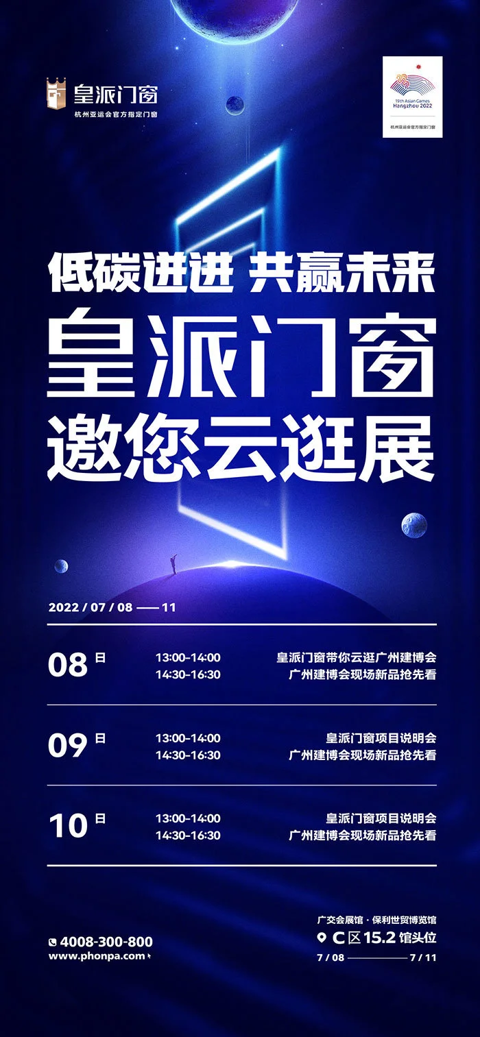 广州建博会展期现场如火如荼,更多精彩仍在继续。扫描下方图片二维码,观看高颜值体验官在线直播,直达皇派门窗展馆,轻松体验建博会现场氛围,观展时间持续到7月11日哦!