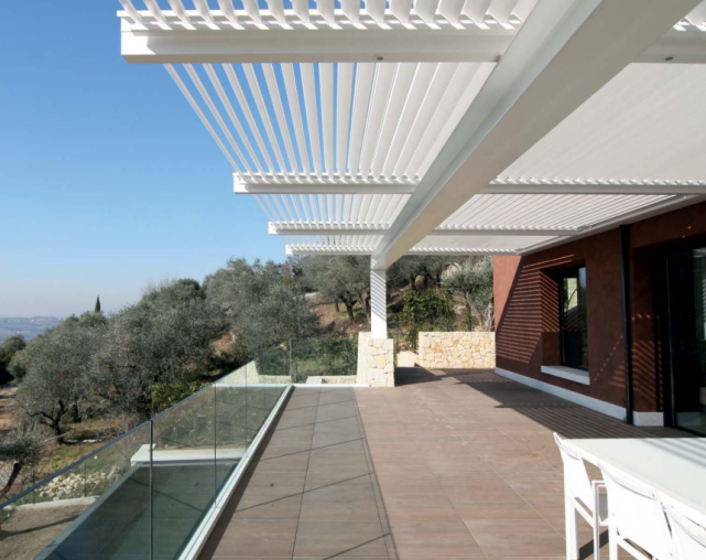 这类应用在私人别墅中的遮阳方案,更能方便管理防晒遮阳和雨季。午后,坐在下面喝喝茶,吃吃点心,再捧上一本书,也是很惬意的事情。