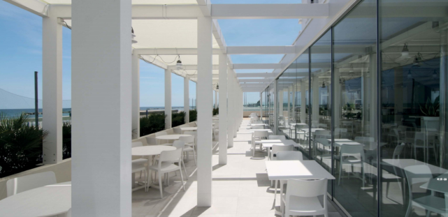 生物气候凉篷非常适合一般的户外餐厅、酒店,这些地方需要额外的受保护和灵活的空间,并且在不受天气条件影响的情况下开展餐饮业务。通透的效果也能让客户可以充分享受与大自然接触的晚餐。