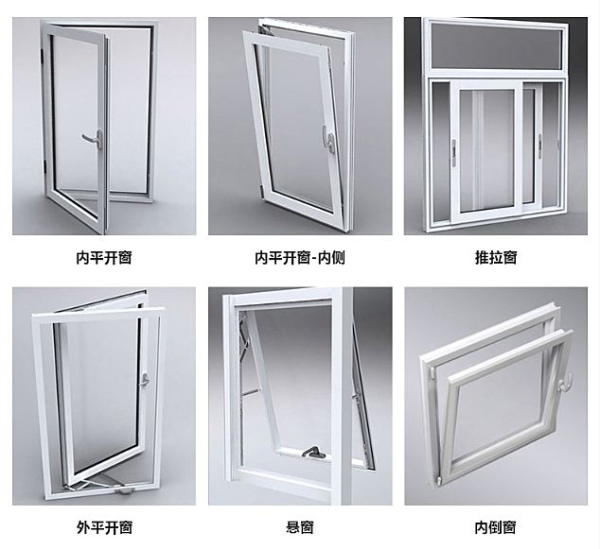 1. 市场常规门窗有:开窗(外开、内开、外开下悬、内开内倒)窗纱一体、移窗。