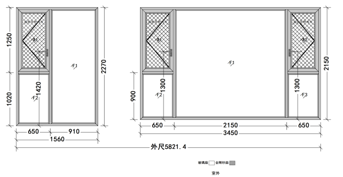 比如上图里面,这个是门窗公司给的设计图,计价方式就是 {1.56米(小窗户的宽度)×2.27+3.45米(大窗户的宽度)×2.15=10.95总面积+3套开启扇=13.95*封阳台的单价