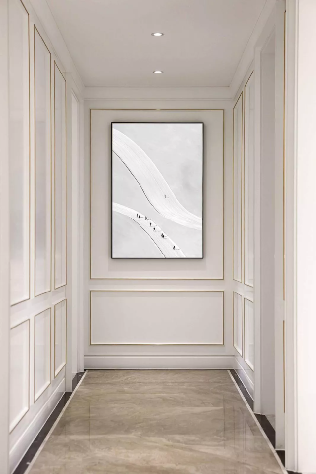 但随着审美的变化,石膏线已逐渐被淡忘,简洁、百搭、成本低、易施工的细框线正在成为人们的新宠。