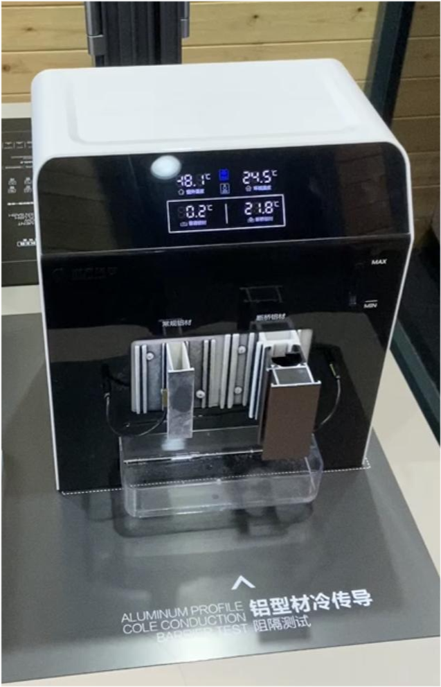 △ 隔热条材质的辨别方法,图片来源于 2021 广州建博会泰诺风展厅;