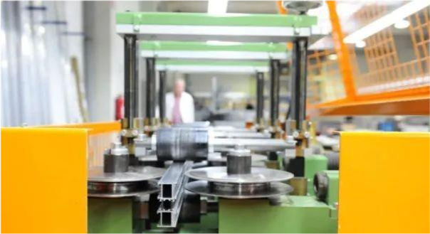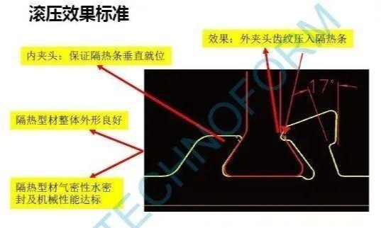 再通过「滚压机」对穿条后型材进行滚压,使隔热条和铝型材达到贴合状态并紧密连接;